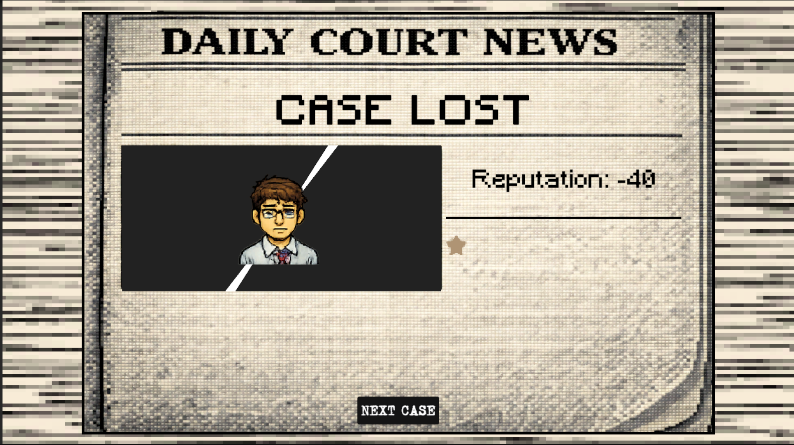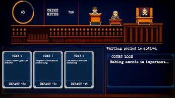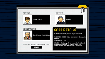 The Public Defender is a fast-paced courtroom strategy / time-management roguelike where each case lasts just 60 seconds.